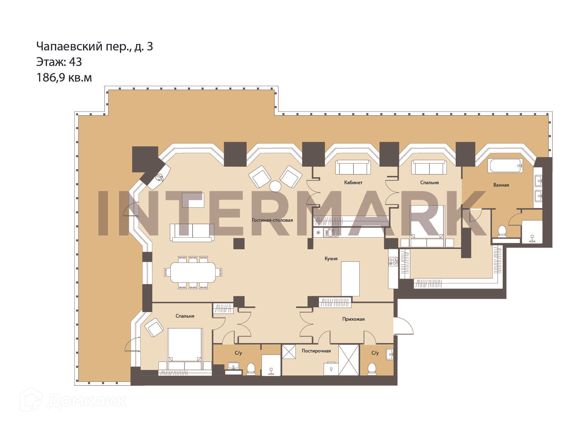4-комнатная квартира, 186.9 м2, этаж 43 / 57, на продажу в Москве, Чапаевский переулок, 3