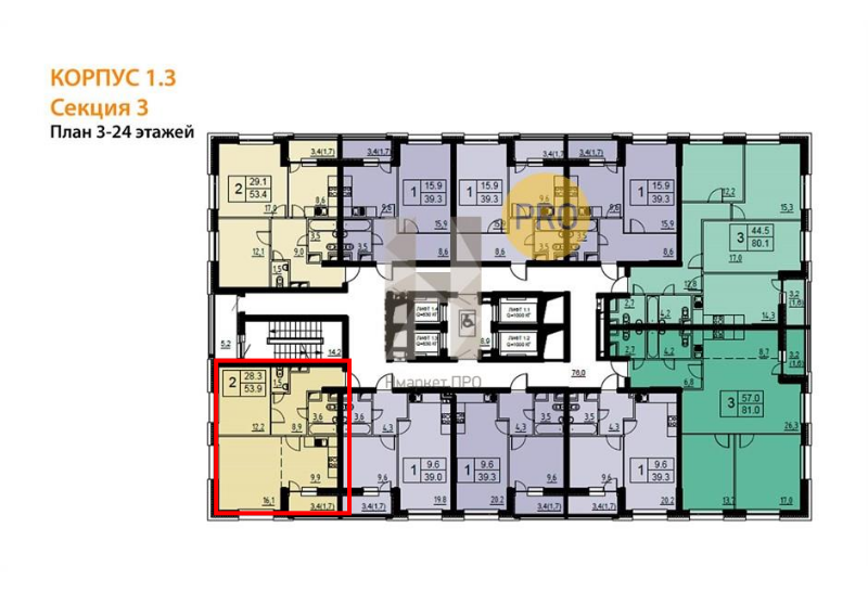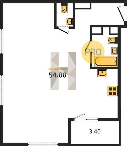Общая площадь 54 м2