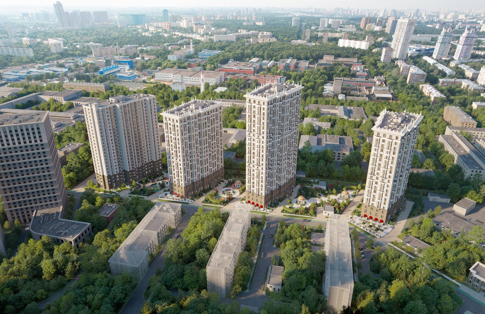 Закрытая и охраняемая территория с зелёным парком, площадками для спорта и отдыха, с культурными экспозициями.