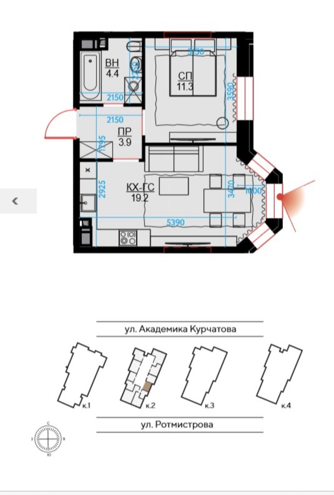 Общая площадь 39 м2