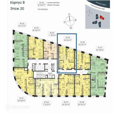 2-комнатная квартира, 42.6 м2, этаж 20 / 26, на продажу в Москве, Нагатинская набережная, 10Ас3