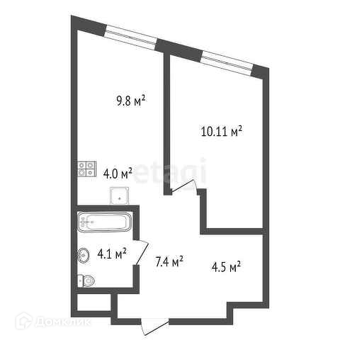 Общая площадь 42.6 м2