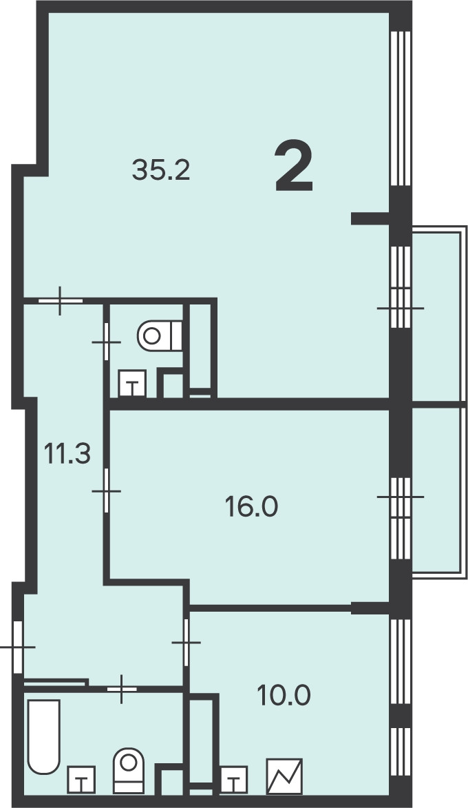 Количество комнат 2