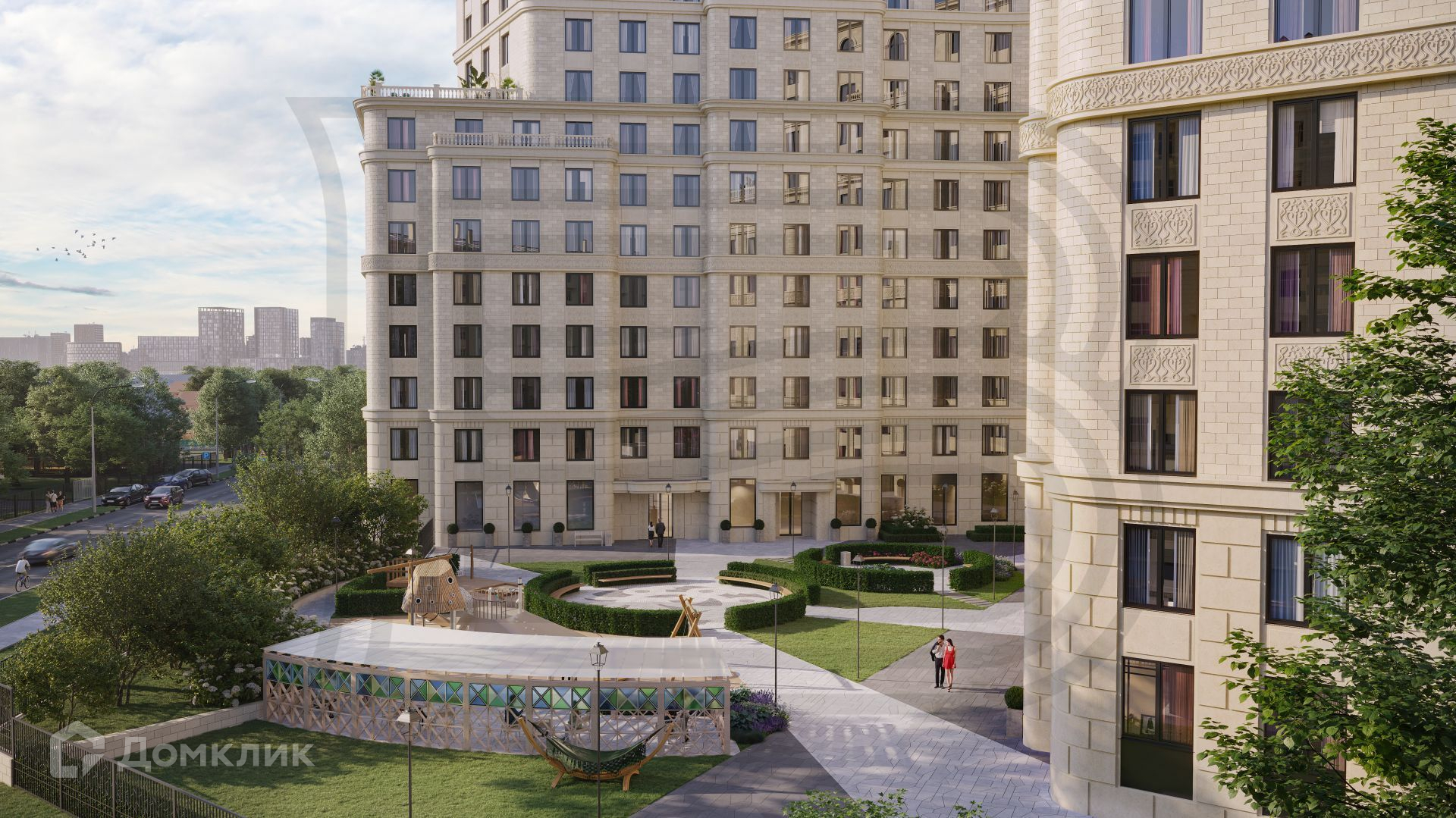 Дом Премиум - класса на 196 квартир с двухуровневым подземным паркингом. Приватный внутренний двор как своеобразное патио с оригинальным мощением, зонами для отдыха, спорта и детских игр, цветниками и кустарниками. На первом этаже будет расположен частный детский сад на 20 воспитанников. В отделке фасада используется североосетинский доломит светлых тонов с элементами орнамента в виде ирисов. В доме установлены лифты KONE, современные инженерные системы, на окнах деревянные двухкамерные стеклопакеты, высота потолка - 3,1м. Lounge - зона на крыше как продолжение благоустройства двора.