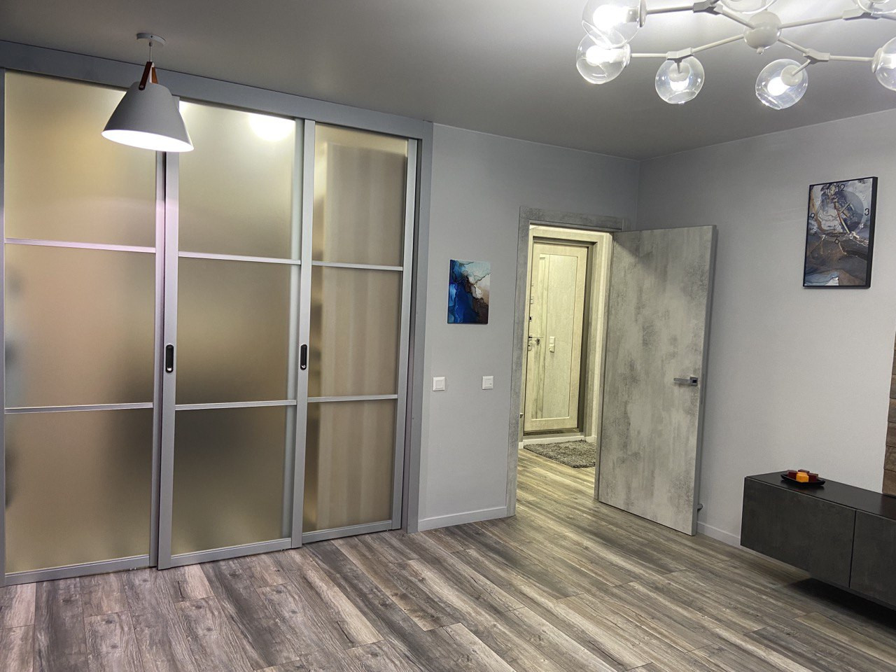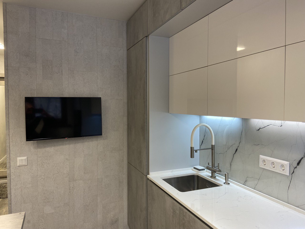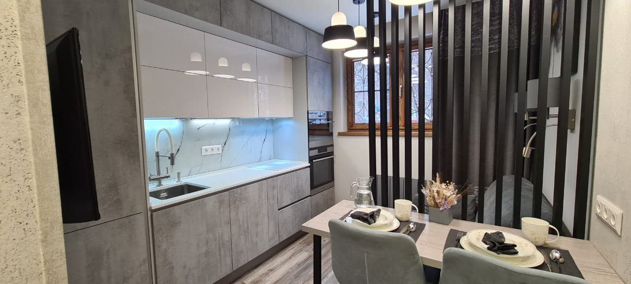 - Новый ремонт по индивидуальному проекту с использованием современных материалов и решений. В прихожей и кухне стены - португальская пробка, в комнате окрашены матовой интерьерной краской с возможностью влажной уборки.
