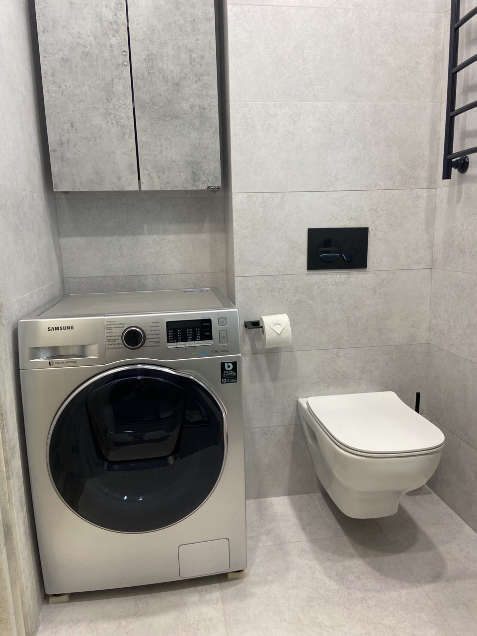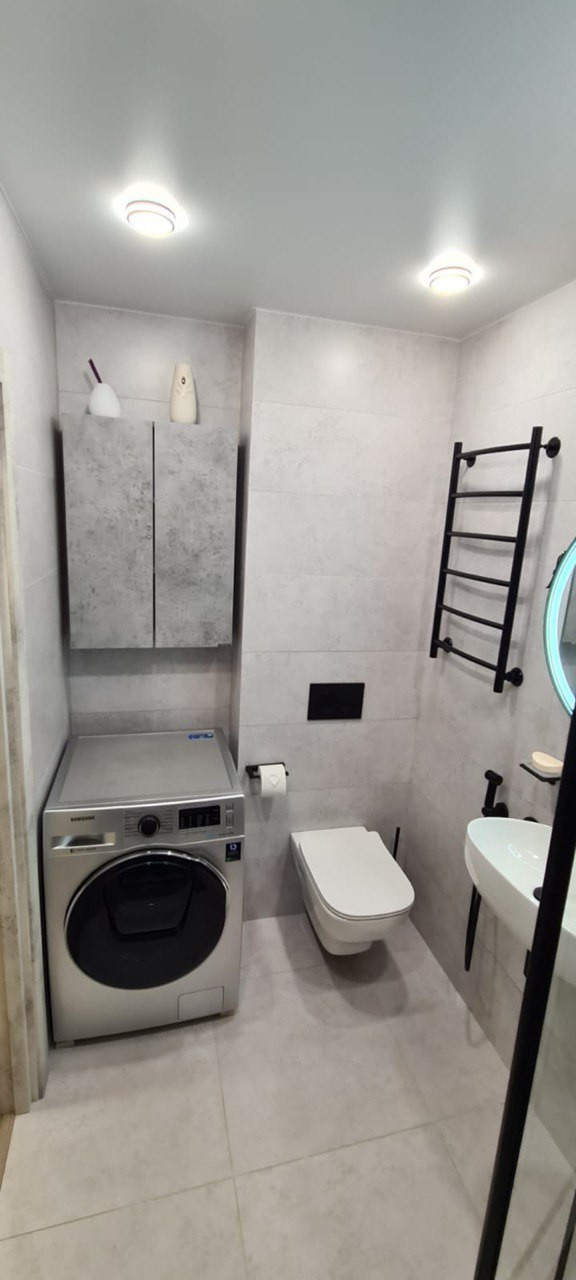 - Объединение санузла согласованно. В санузле тёплый пол, стиральная машина с сушкой и душ с терморегулятором.