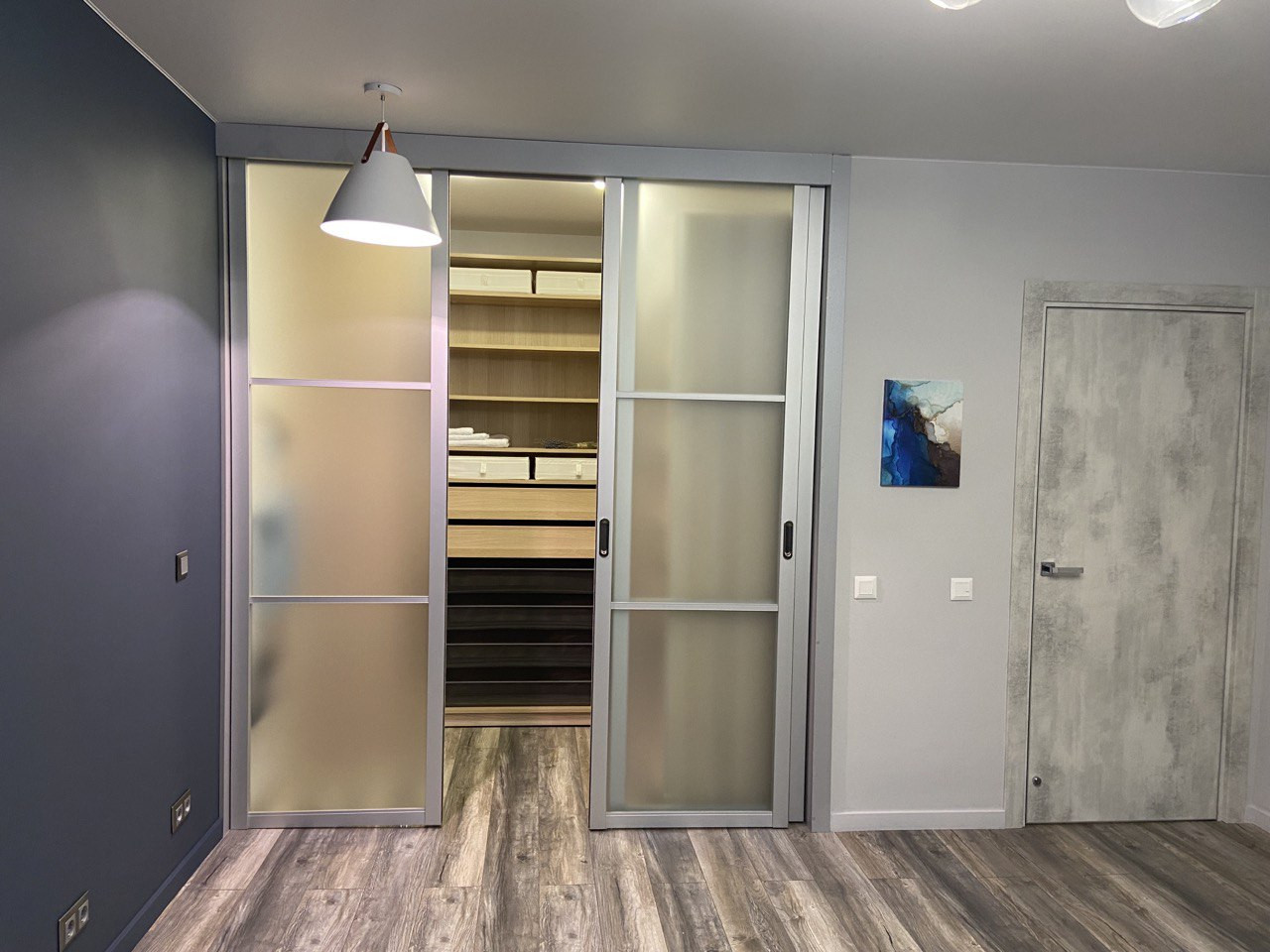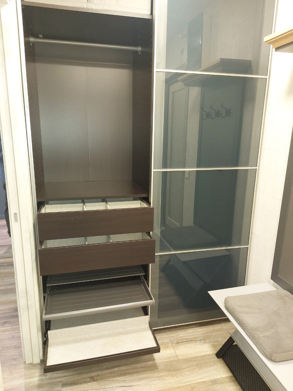 - В комнате оборудована просторная обустроенная гардеробная и зона TV.