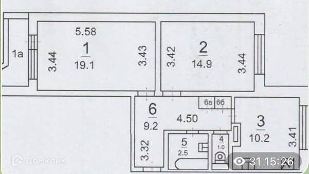 Общая площадь 58 м2