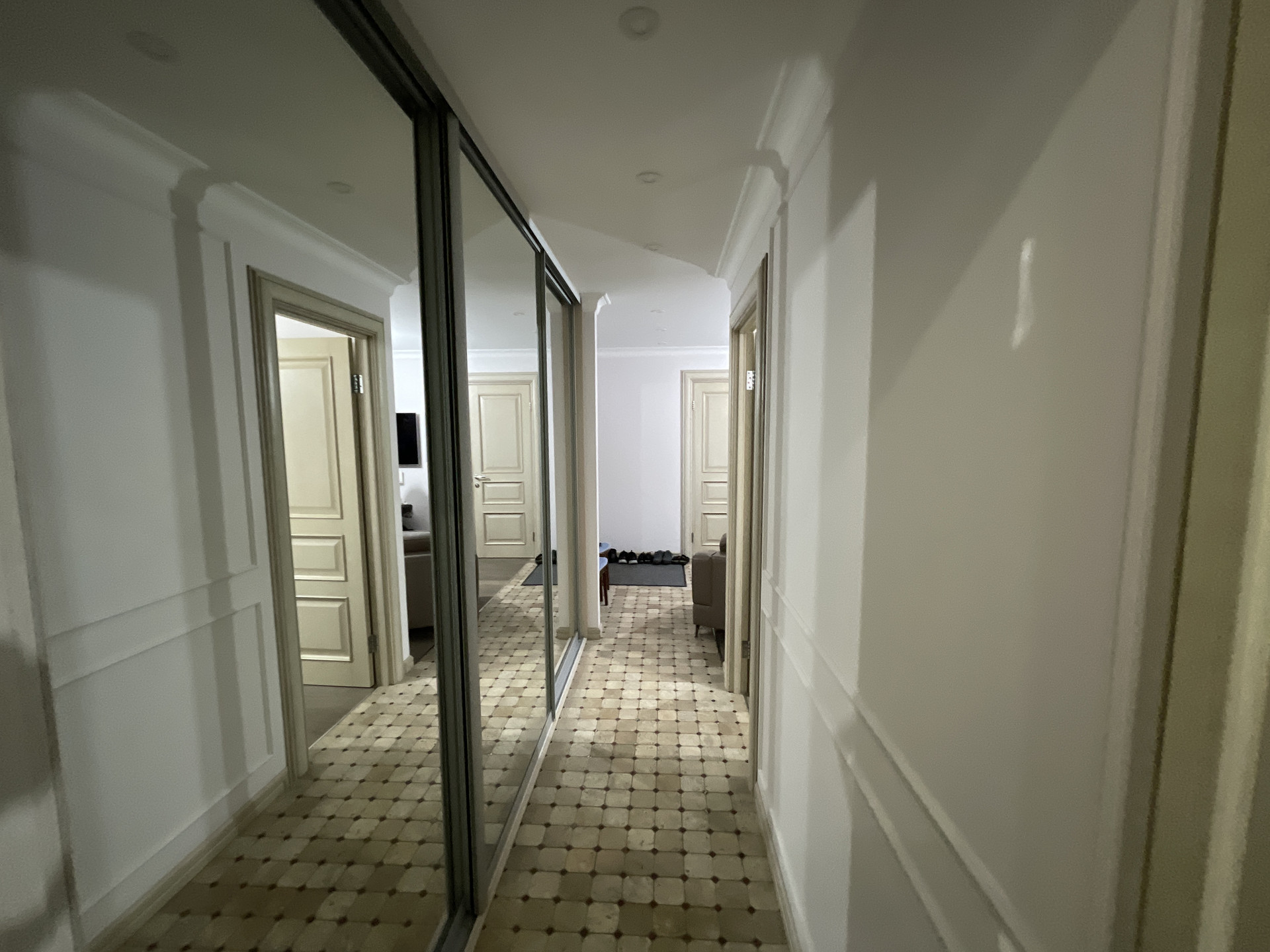 Продается трехкомнатная квартира с современным ремонтом, две изолированные спальни + кухня/гостиная. В квартире был сделан полный капремонт с заменой проводки, батарей и всего остального. Сделана шумоизоляция внешнего периметра стен, пола и потолка. Делали для себя, пол паркетная доска, двери дуб, 3 зоны теплых полов, подоконники из натурального камня, бойлер Италия, сантехника Германия, плита с духовкой SMEG, кондиционер, несколько больших встроенных шкафов, застекленный балкон. Более 3х лет в собственности.