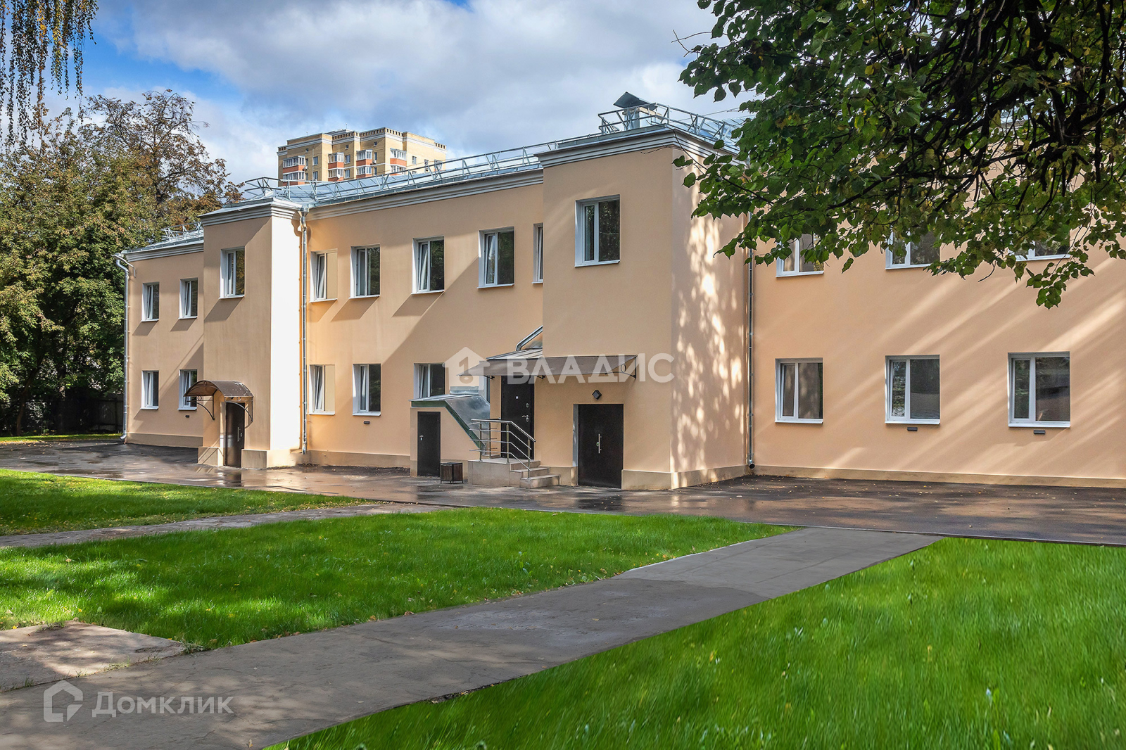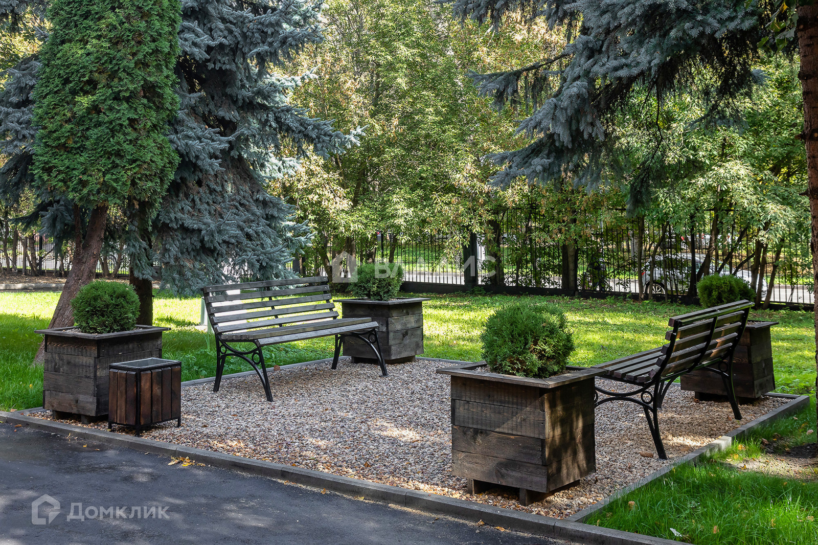 - Внутренняя территория благоустроена: асфальтированные дорожки, газон, спортивная площадка, лаундж-зона.