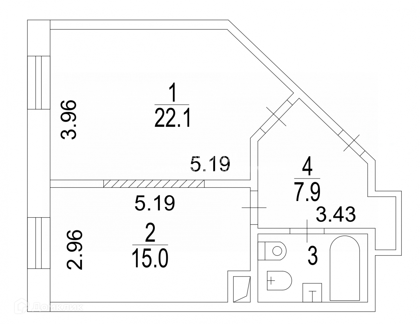 Жилая площадь 22.1 м2