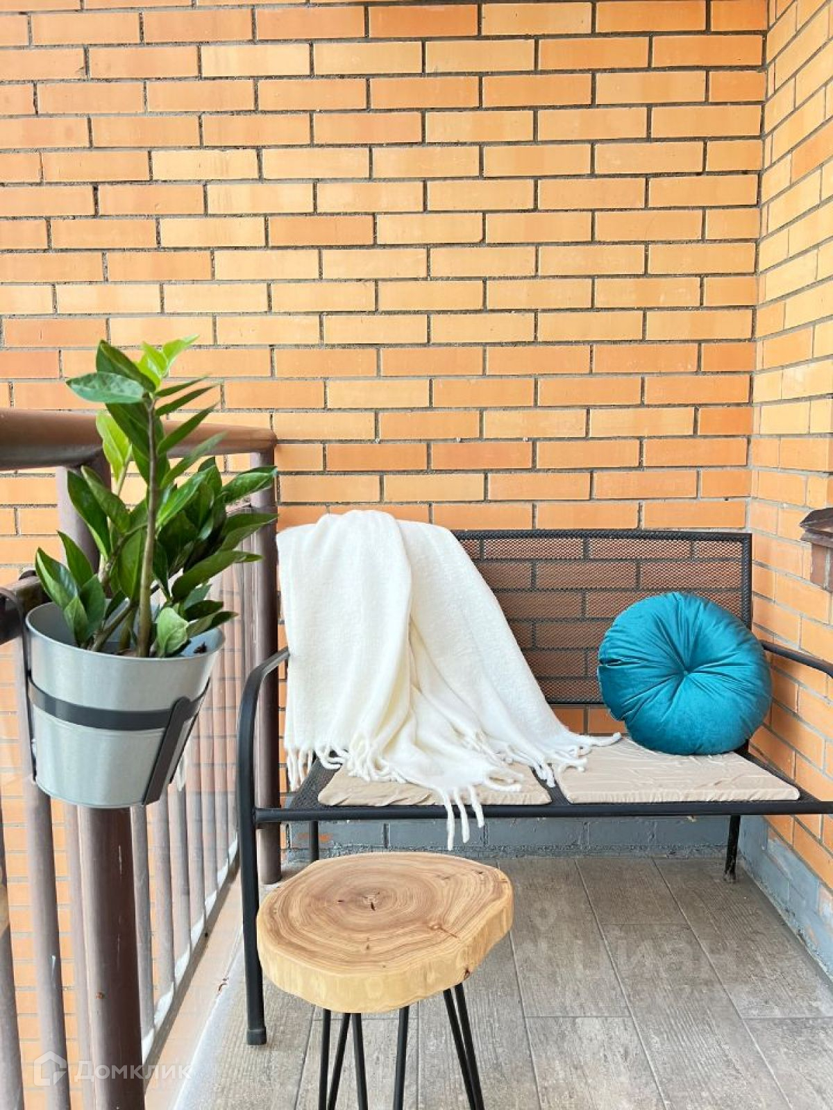 Большой открытый балкон с прекрасным видом и уютной зоной.