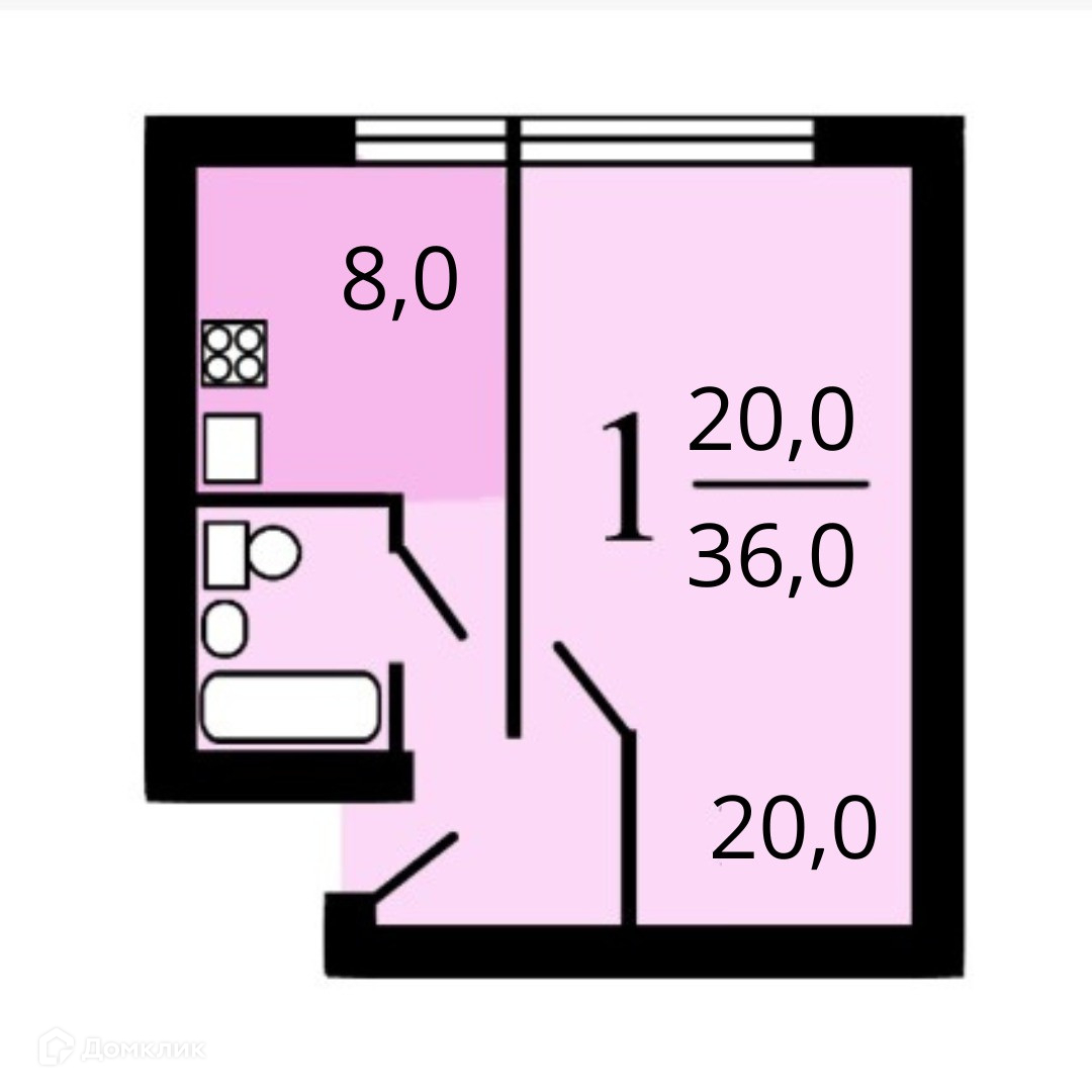 Общая площадь 36 м2