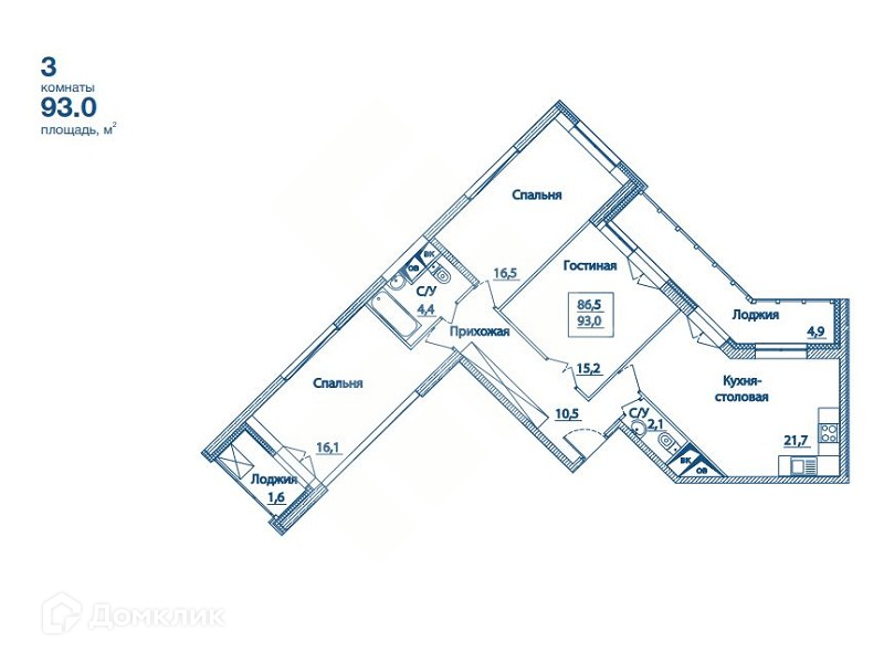 Общая площадь 93 м2
