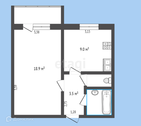 Общая площадь 38 м2