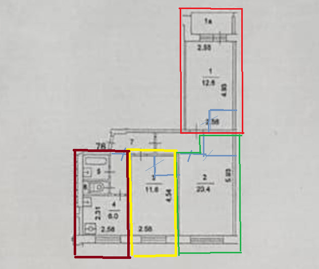 Жилая площадь 11.6 м2