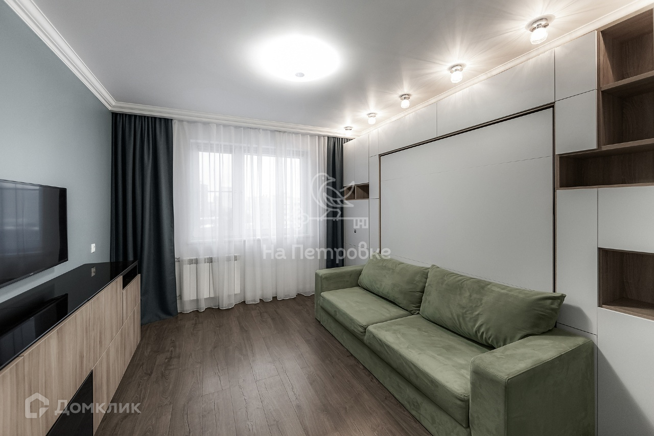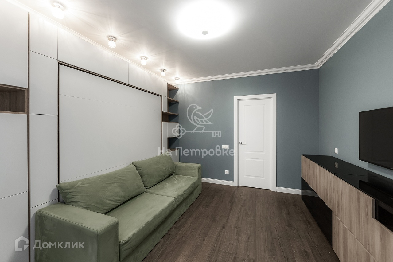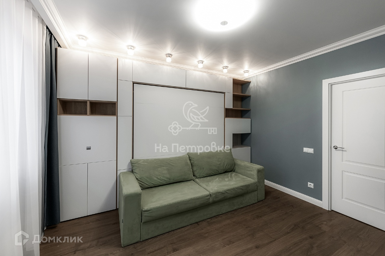 Вторая комната площадью 15 кв.м оборудована многофункциональной мебелью под заказ. Комнату можно использовать как гостиную или спальню.  Кровать-трансформер, с боковыми пеналами для хранения вещей, при желании легким движением руки превращается в полноценную кровать.