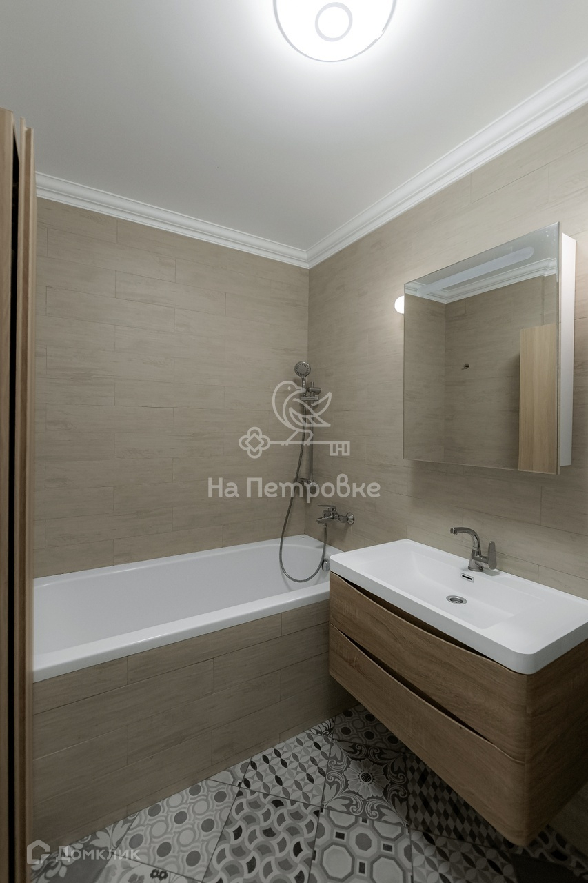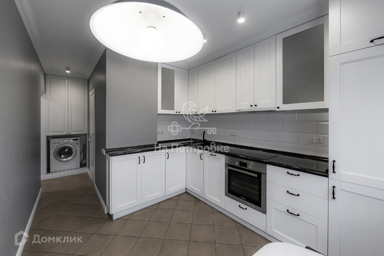 Большая светлая кухня со всей необходимой встроенной техникой. Совмещенный санузел с качественной сантехникой.