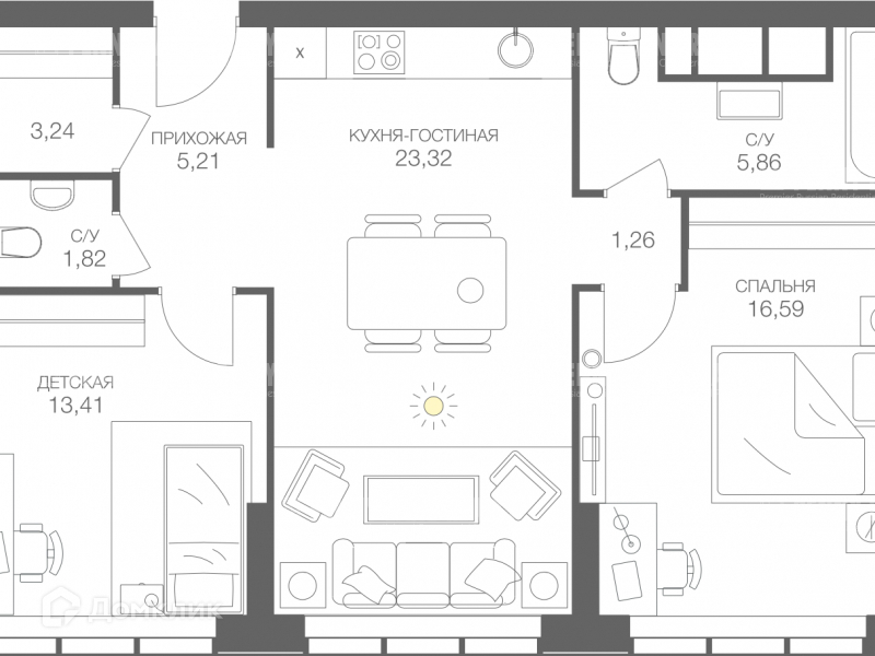 Общая площадь 71 м2