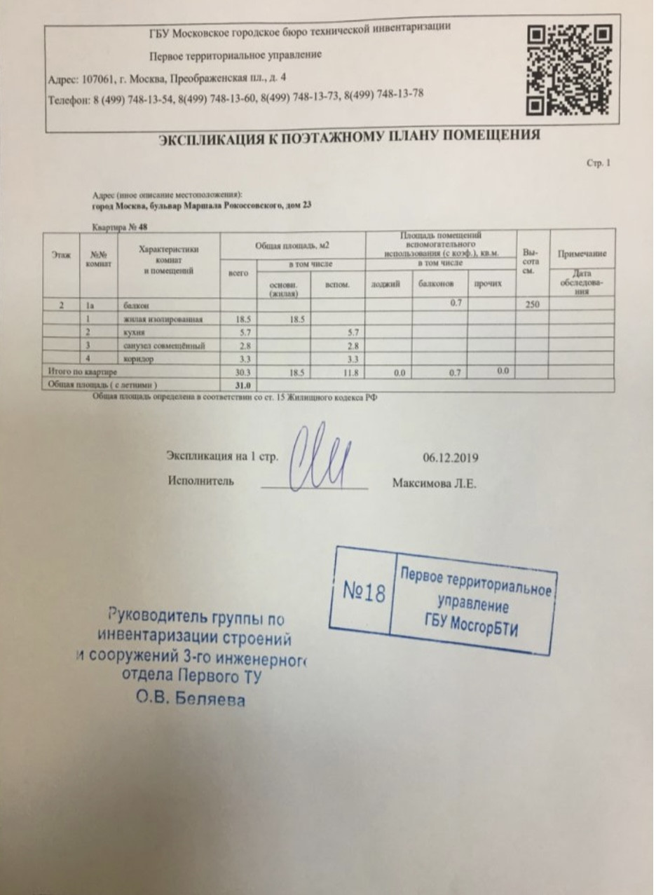 1-комнатная квартира, 30.3 м2, этаж 2 / 5, на продажу в Москве, бульвар Маршала Рокоссовского, 23