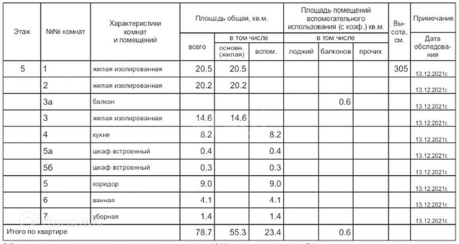 Общая площадь 78.7 м2