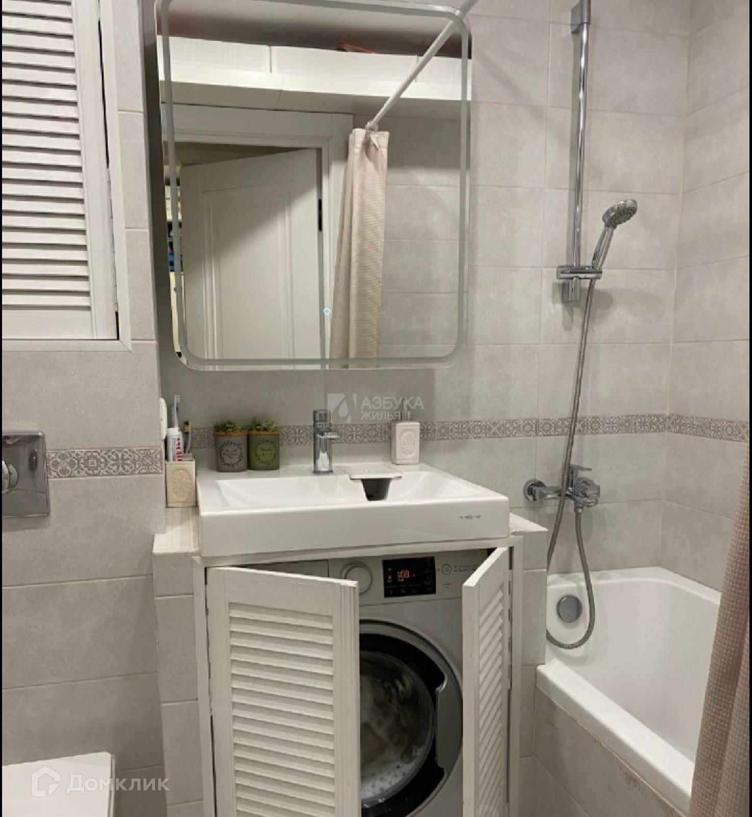 - санузел совмещенный установлена стиральная машина, проточный водонагреватель, электрический полотенцесушитель.