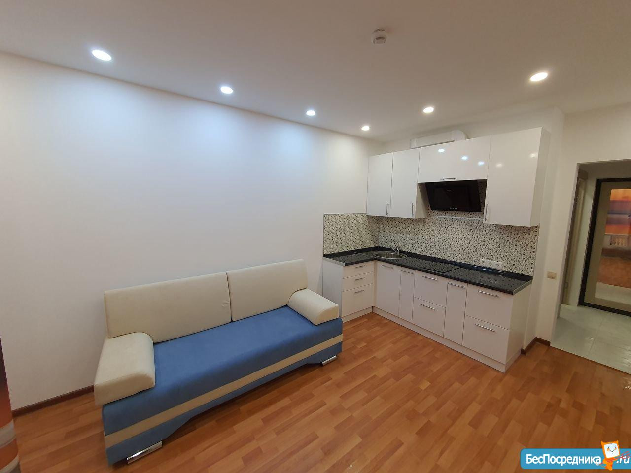 Просторная студия общей площадью 21 квадратных метра в шаговой доступности от метро. Окна пластик.
