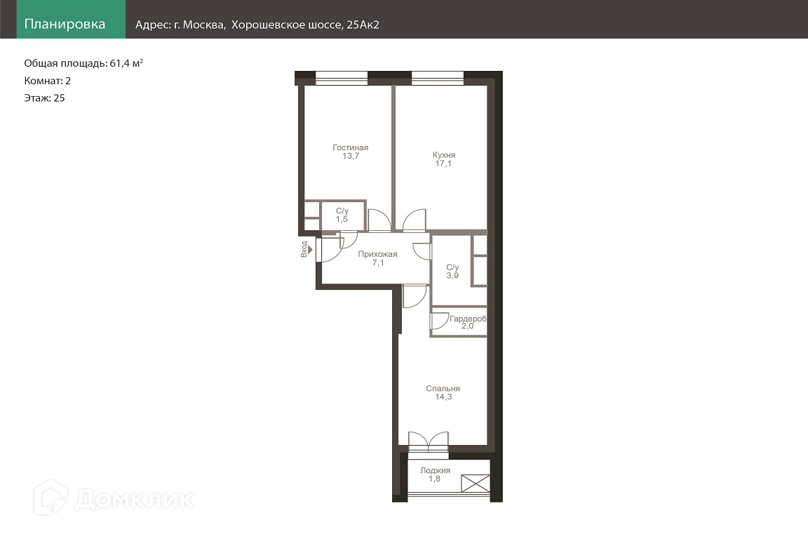 Общая площадь 61.4 м2