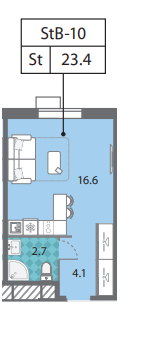 Общая площадь 23.4 м2