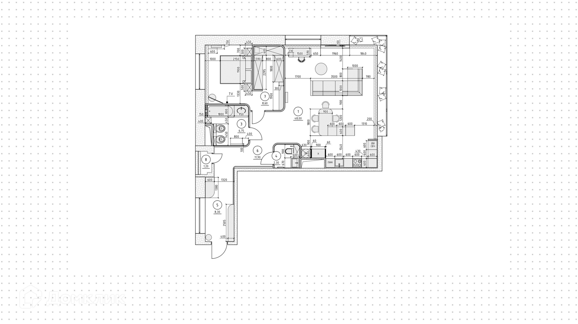 ID 193 212. Видовая квартира с 1-й спальней общей площадью 98 м² в доме премиум-класса «Резиденция Монэ». В квартире выполнена качественная отделка whitebox с использованием премиум материалов, возведены перегородки из блоков, проведены все коммуникации. Установлены дизайнерские двухуровневые потолки с треками, подсветкой по периметру и скрытыми нишами, выполнена стяжка со звукоизоляцией. Полностью готова зона кухни.