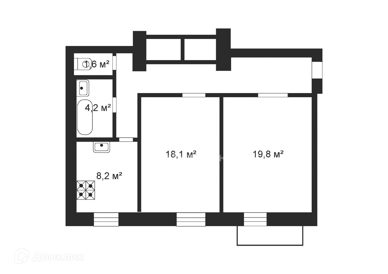 кухня – 8.2 кв.м; с/у разд.(ванная/туалет) – 4.2 / 1.6 кв.м; балкон – 0.6 кв.м (коэф.=0.5); h=3 м; окна – пластиковые; вид из окон – на улицу.