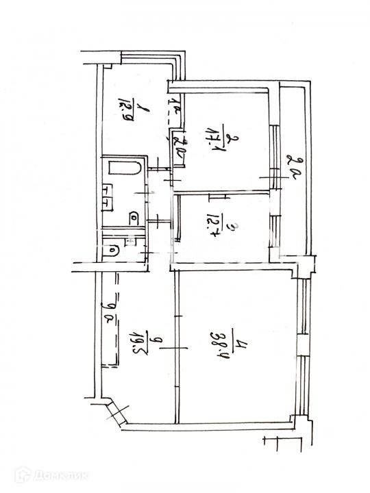 Просторная трехкомнатная квартира 116.8 кв.м. включает три изолированные комнаты 38.4 кв.м., 17.1 кв.м, 12.9 кв.м., кухня 12.7 кв.м., объединенная с одной из комнат общим балконом 3.4 кв.м., просторный холл со встроенными шкафами 19.5 кв.м., с/у c душевой кабиной и ванной, постирочная комната.