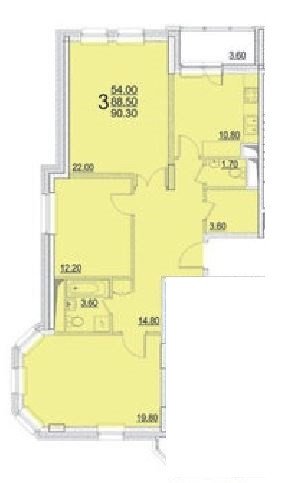 Общая площадь 89.7 м2