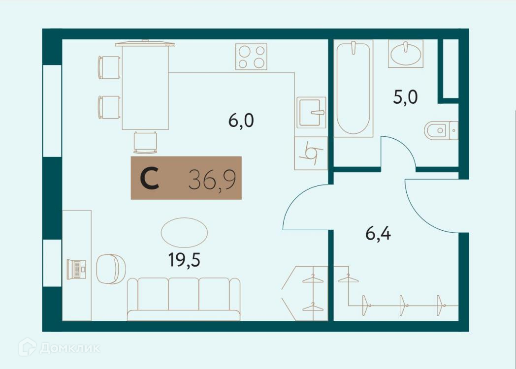 Общая площадь 37 м2