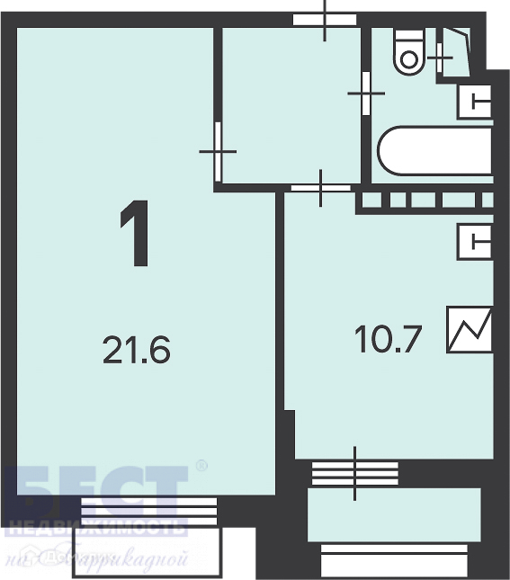 Жилая площадь 21.6 м2