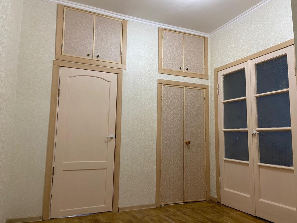 Квартира расположена на высоком 1-м этаже, окна начинаются над крышами машин. Единственная квартира на площадке за счёт Арки в доме, соседей нет.