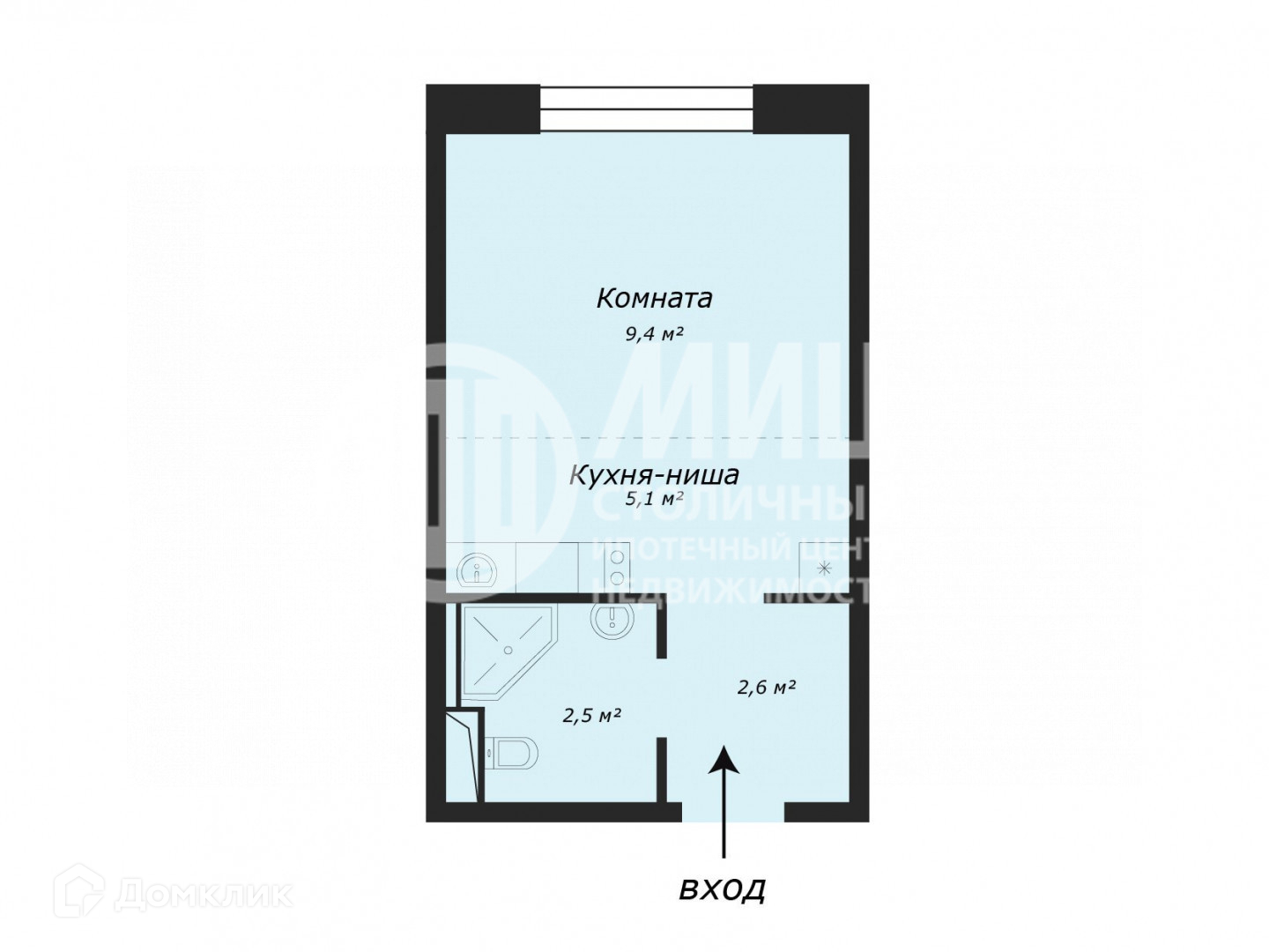 Жилая площадь 9.4 м2
