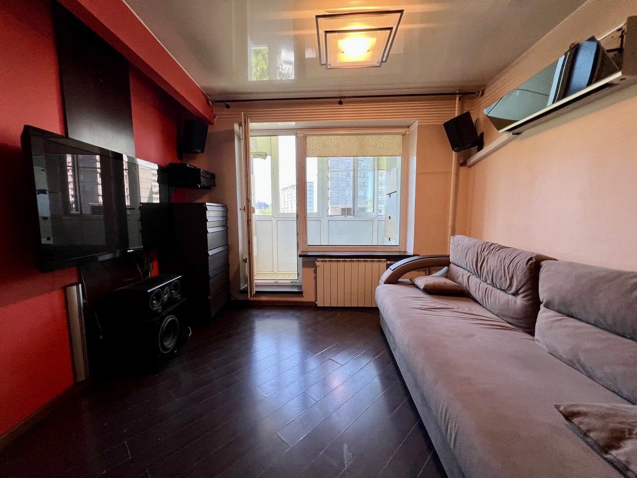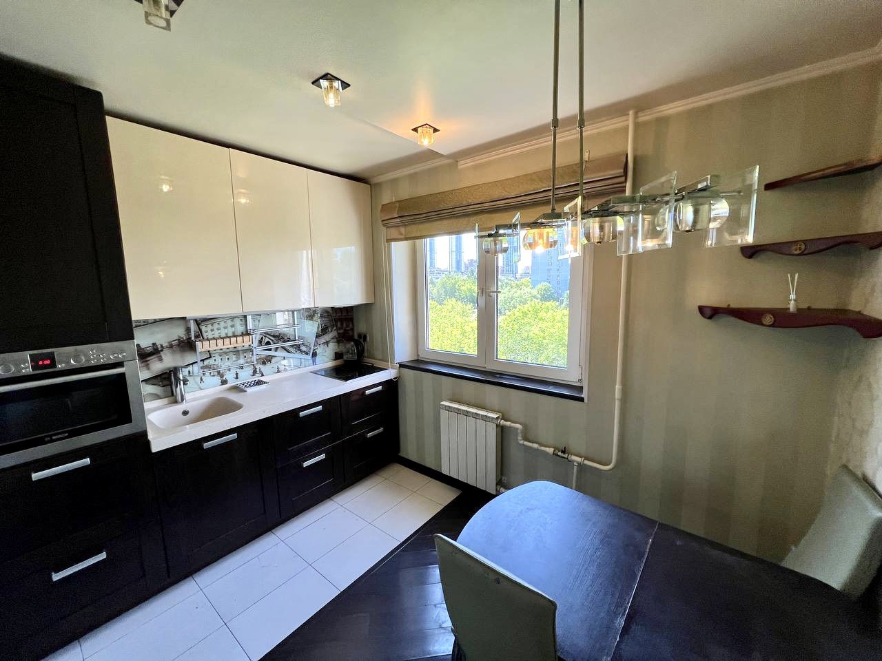 Квартира полностью укомплектованная заказной и встроенной мебелью и техникой. Все остается - встроенная кухня с техникой Bosh, стиральная машинка Bosh, двухкамерный холодильник Gorenje, телевизор Pioneer, акустическая система с риверсом и колонками, кондиционер. Евро-санузел СУС с импортной плиткой до потолка и сантехникой Гроу, балкон, застеклённый двойными стеклопакетами.
