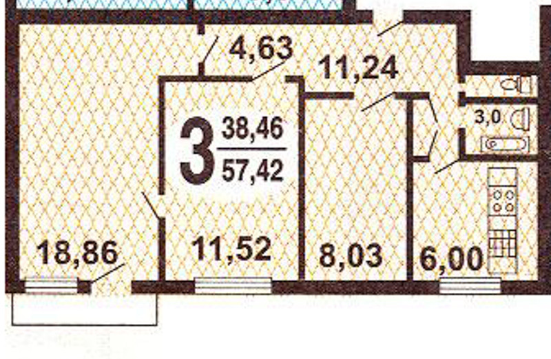 Общая площадь 58 м2