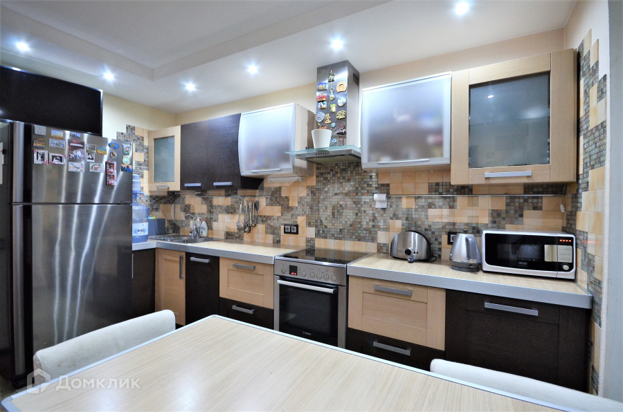 - Функциональная кухня. Кухня оборудована бытовой техникой: - посудомойка - холодильник - вытяжка - духовой шкаф - варочная панель.