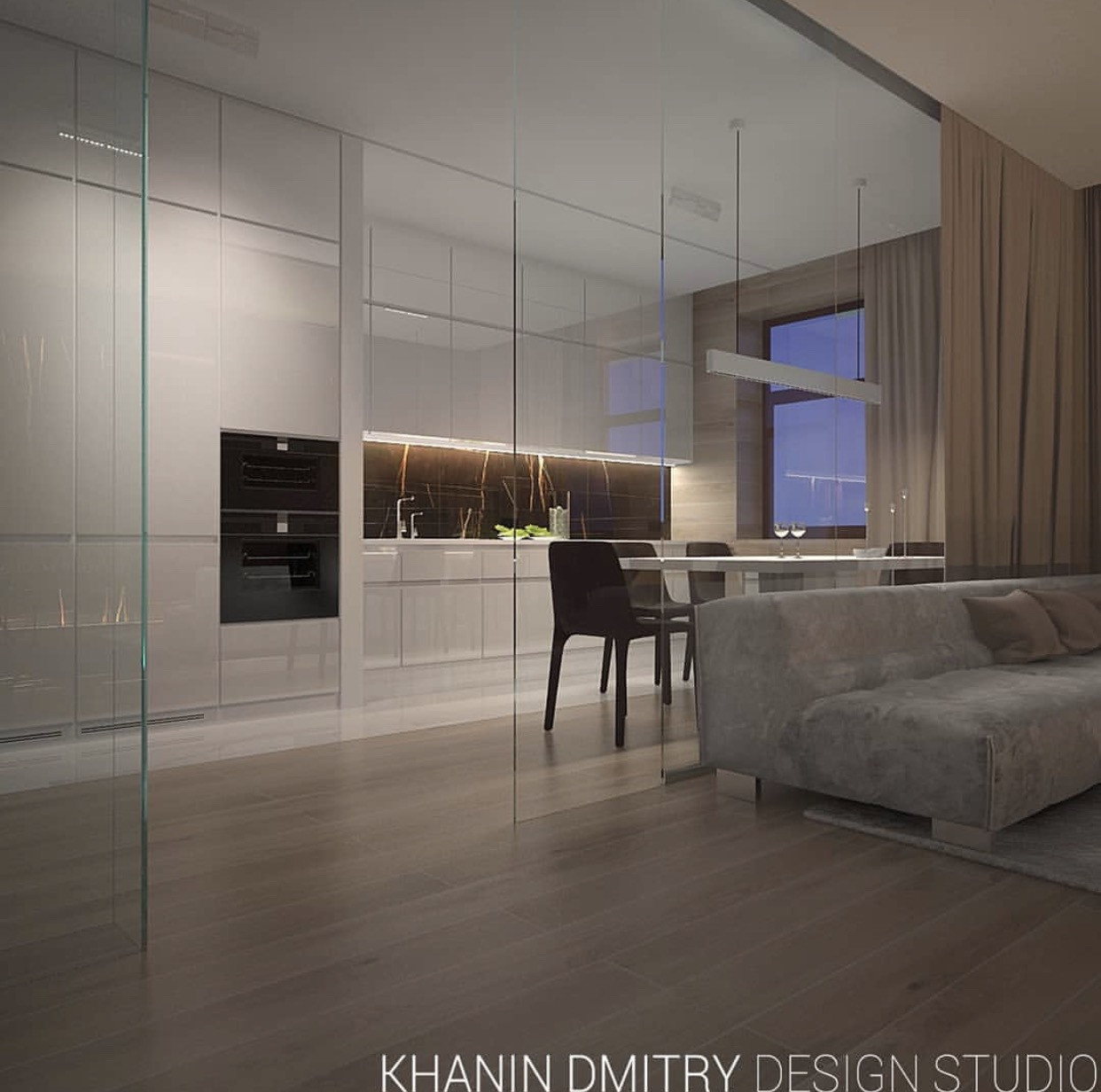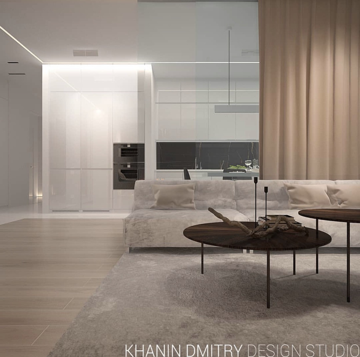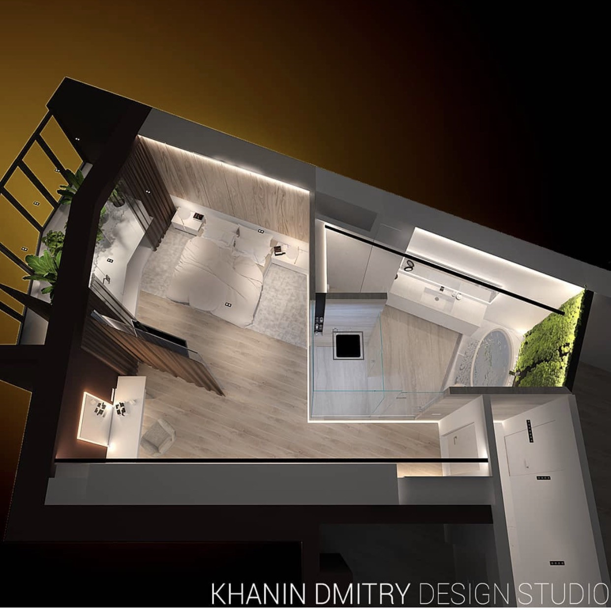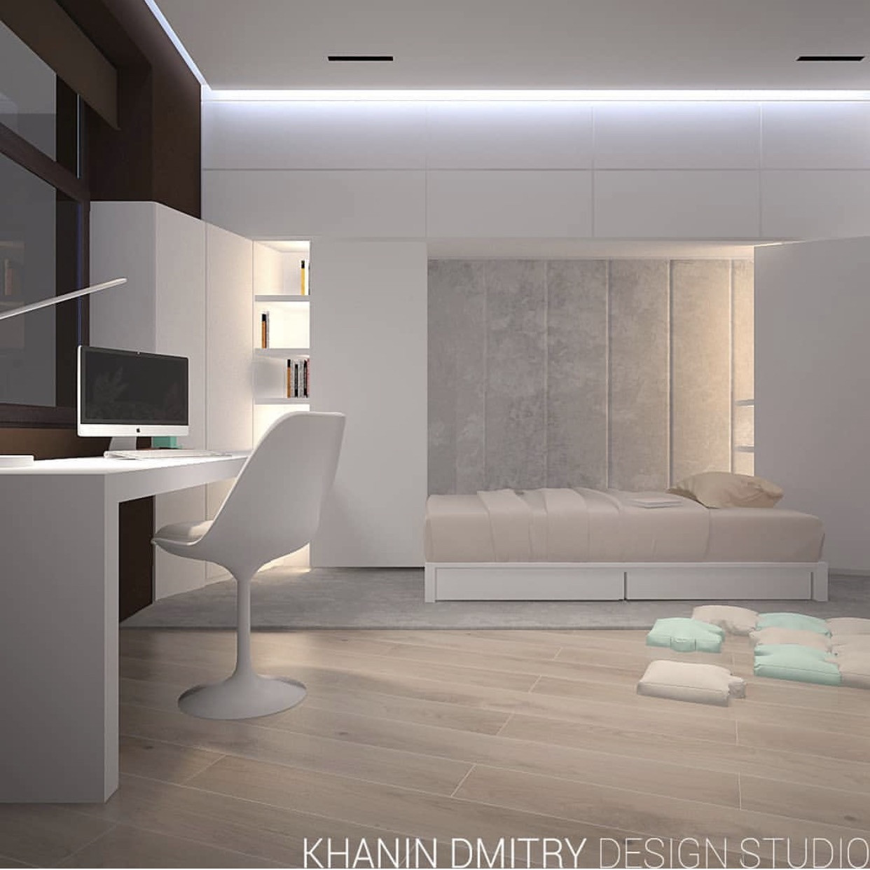 Есть готовый дизайн проект, планировка которого включает в себя большую мастер - спальню с ванной, детскую комнату, кухню - гостиную площадью 50м2.