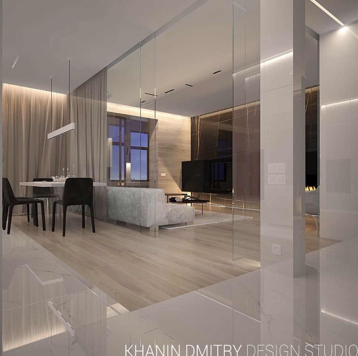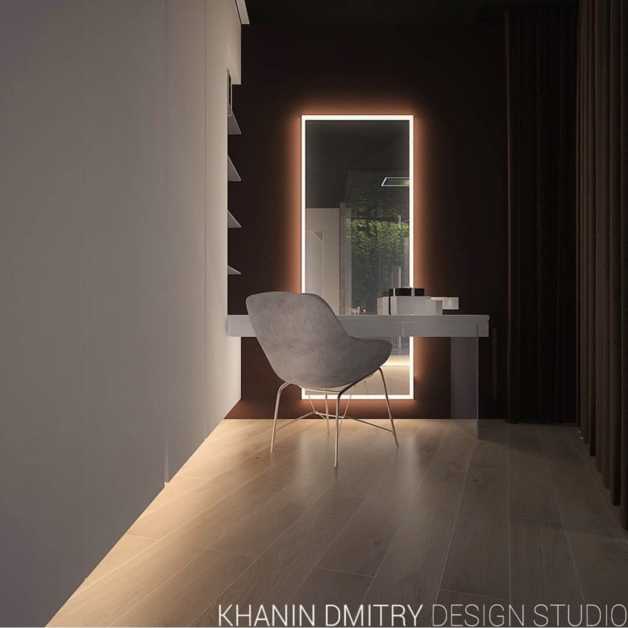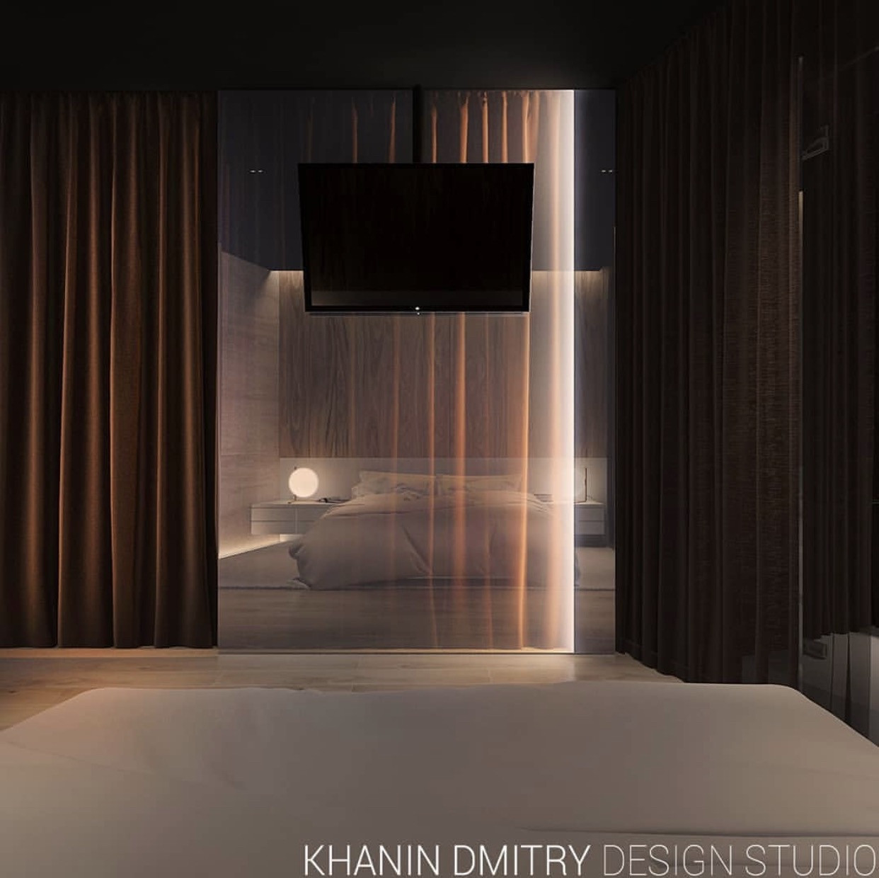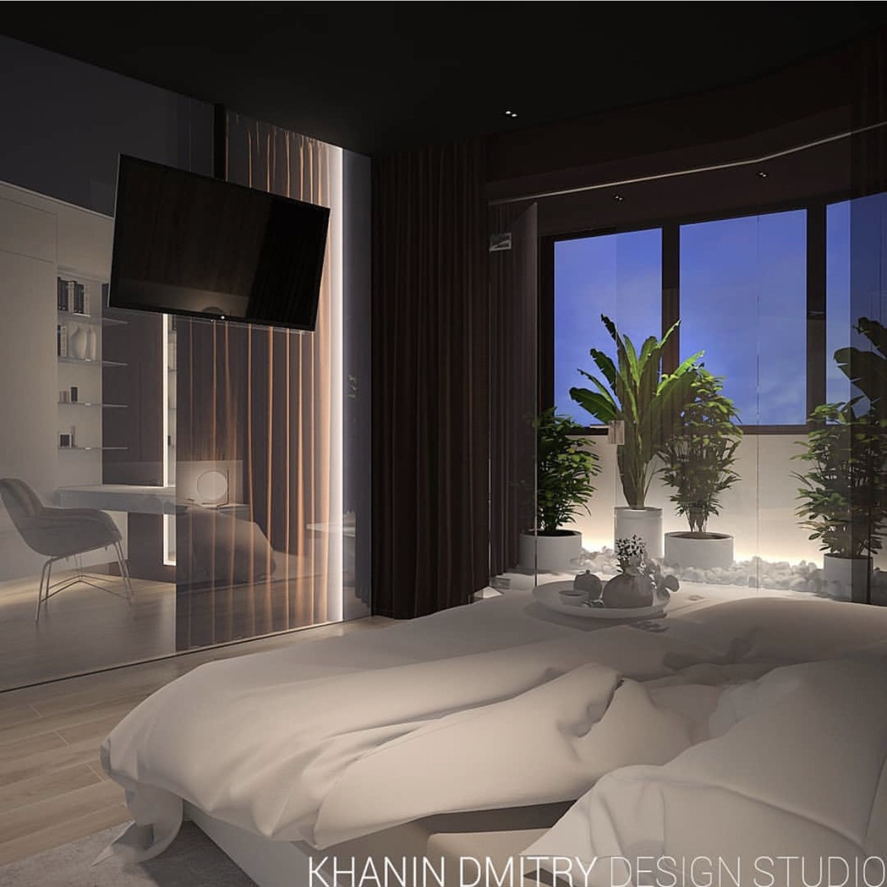 Есть готовый дизайн проект, планировка которого включает в себя большую мастер - спальню с ванной, детскую комнату, кухню - гостиную площадью 50м2.