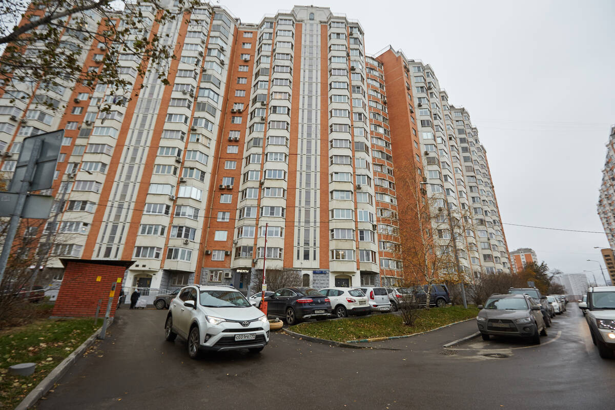 Въезд на территорию дома через шлагбаум, парковка во дворе свободная.
