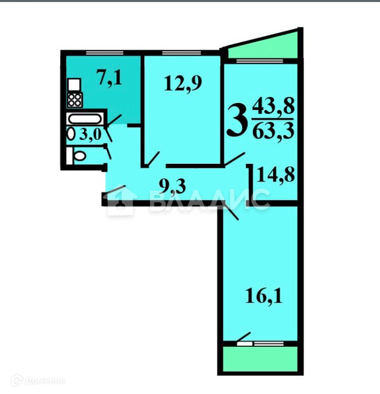 Количество комнат 3