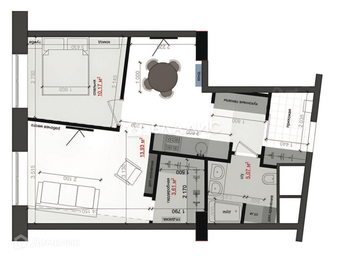 Площадь кухни 17.1 м2
