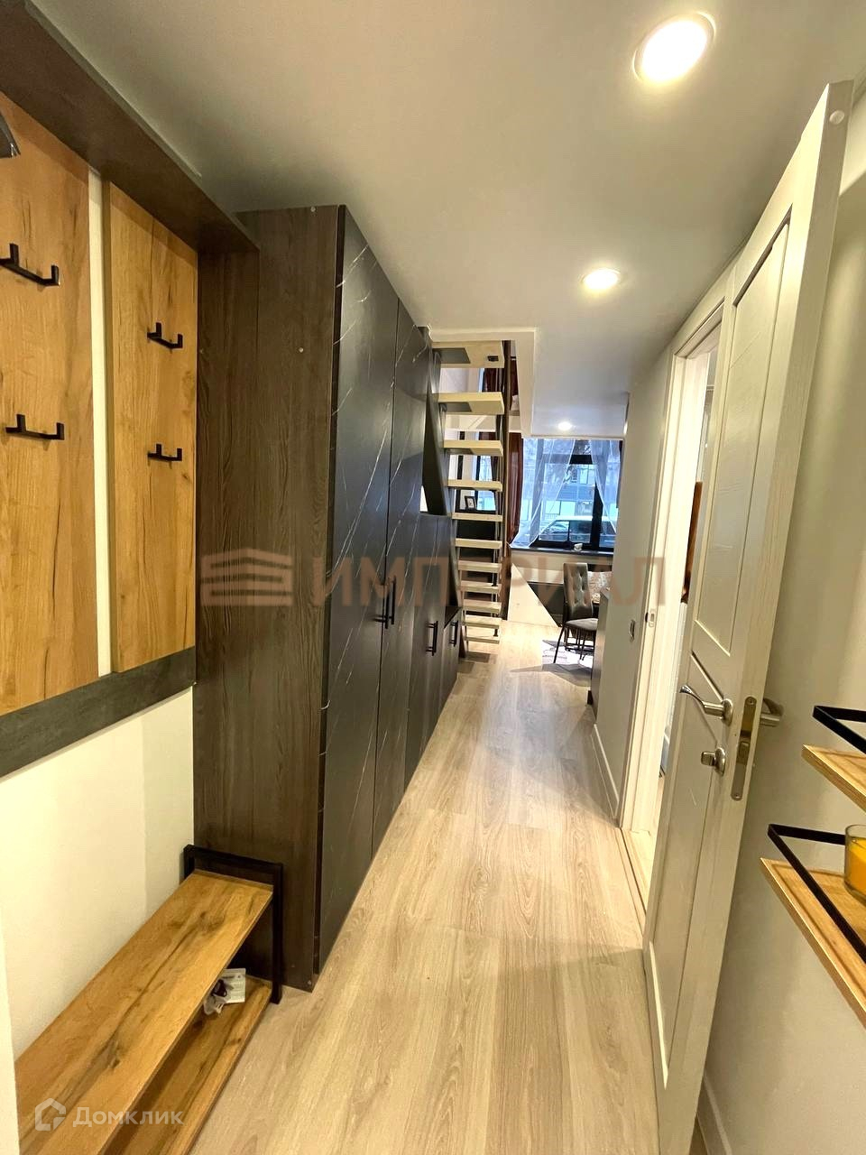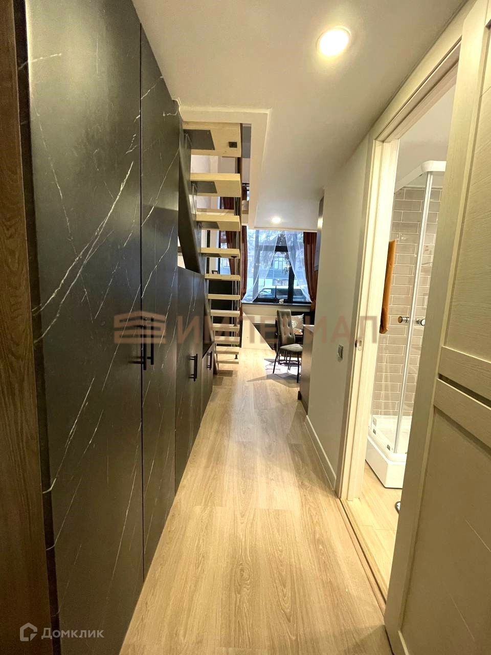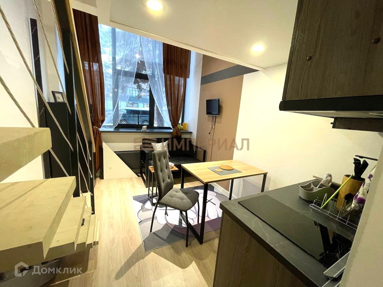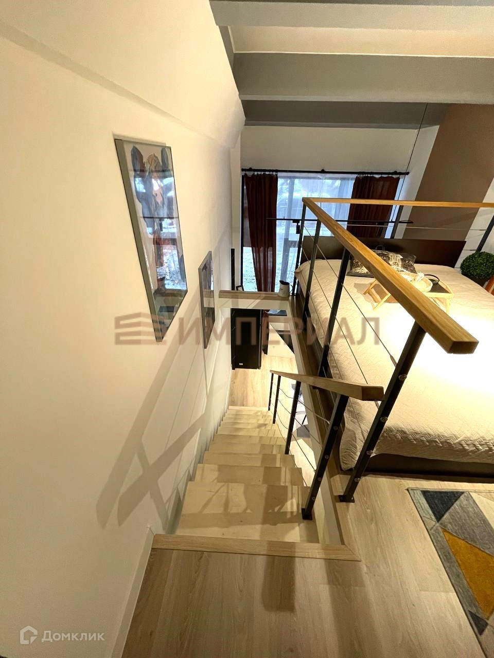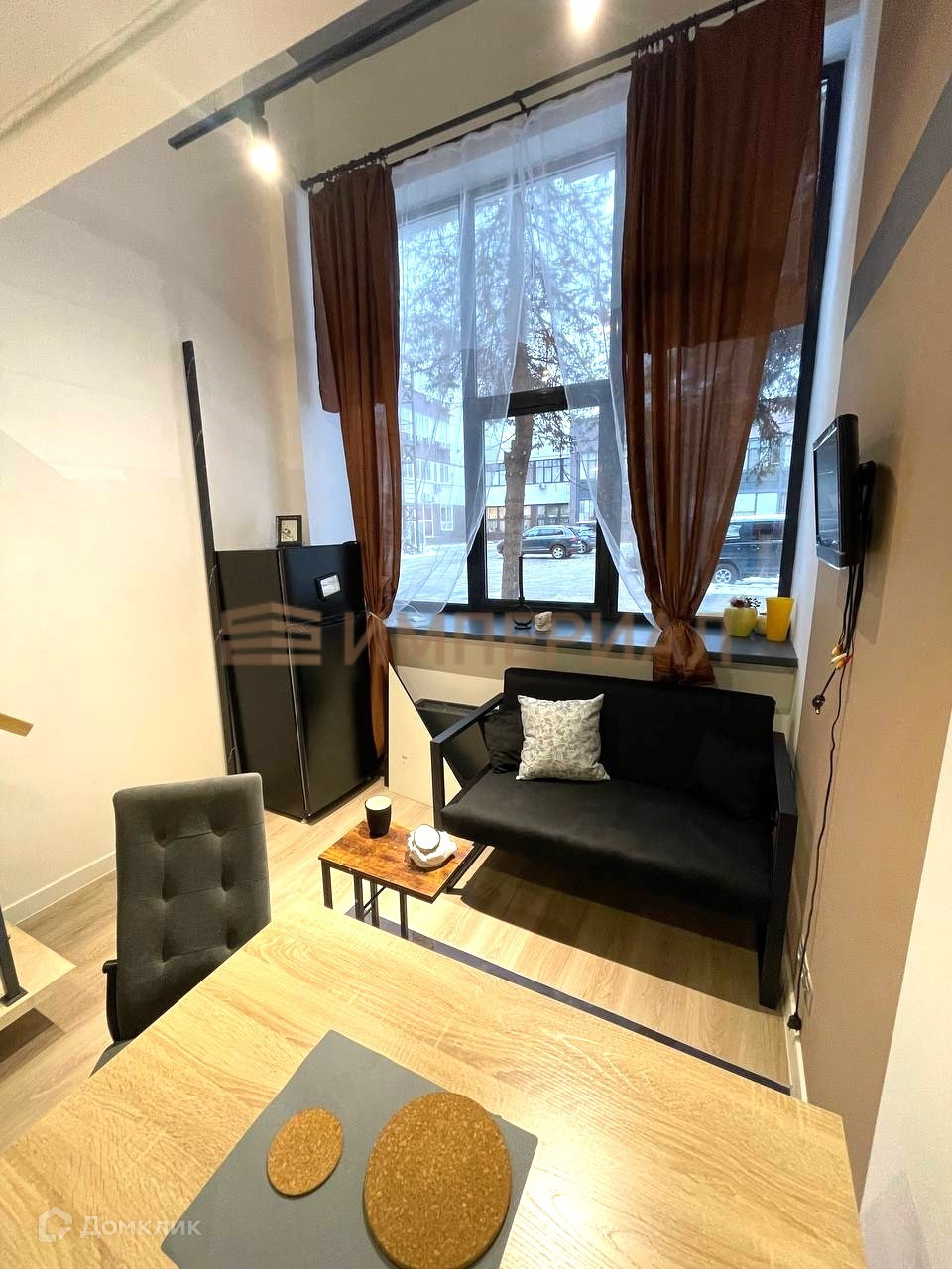 Студия с полноценным вторым уровнем (высота 3м). 30.6 м2 = 16.6 м2 + 14 м2.