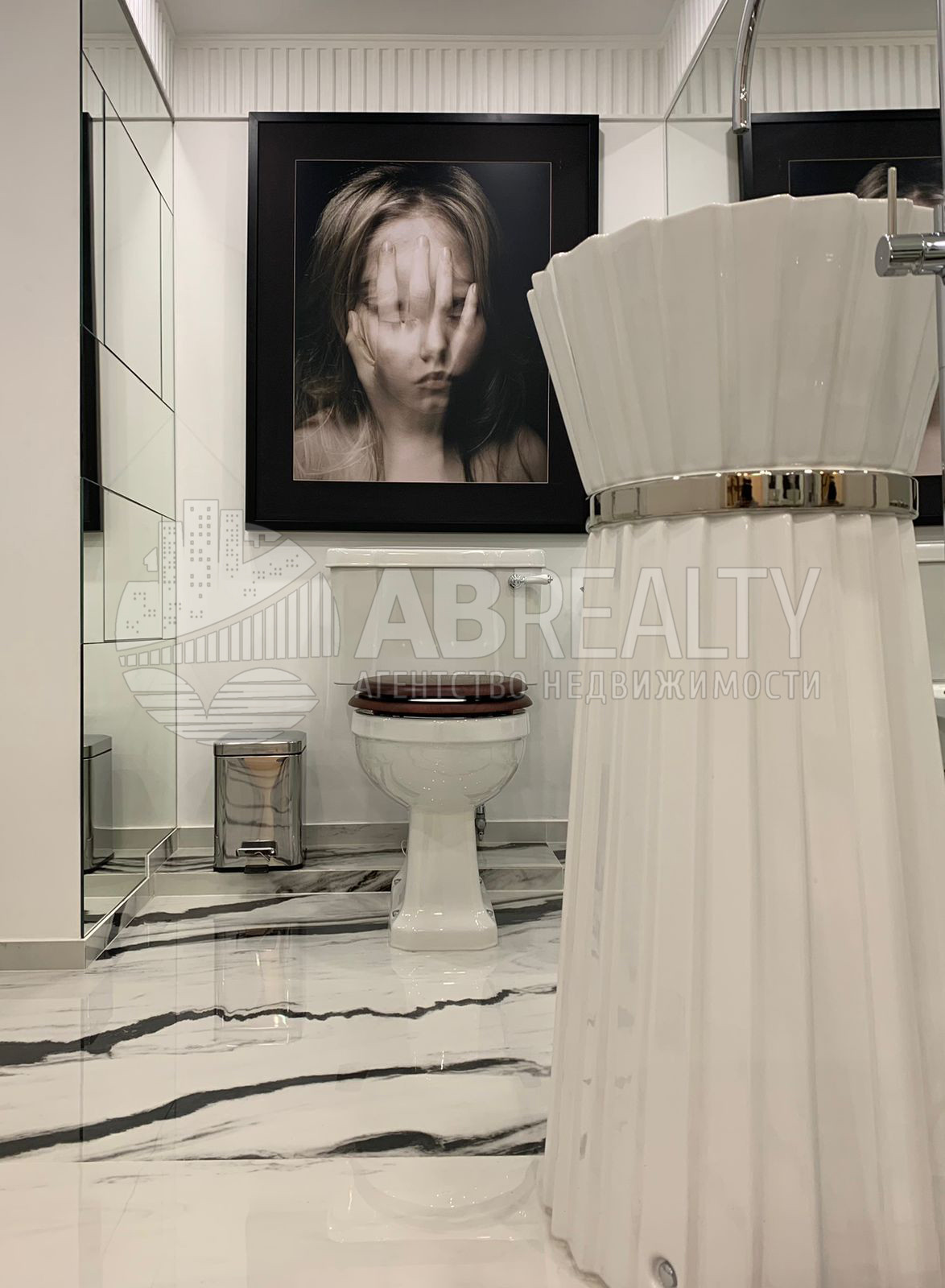 Квартира полностью обставлена мебелью топовых марок и укомплектована бытовой техникой Miele и Liebherr. Санузлы отделаны мрамором и укомплектованы сантехникой Devon&Devon.