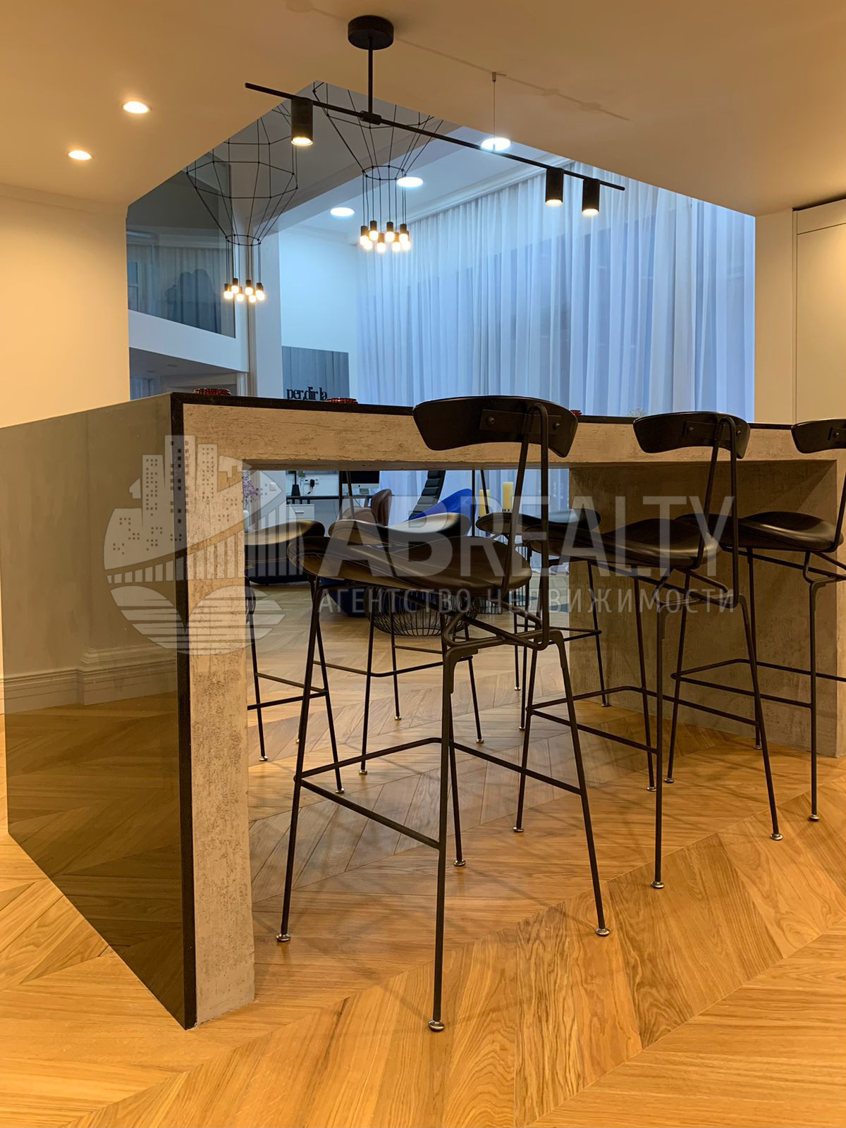 Высота потолков в гостиных – 4,5 м, что дает вместе с панорамными окнами ощущение пространства и наполненности светом, как в загородном доме.
