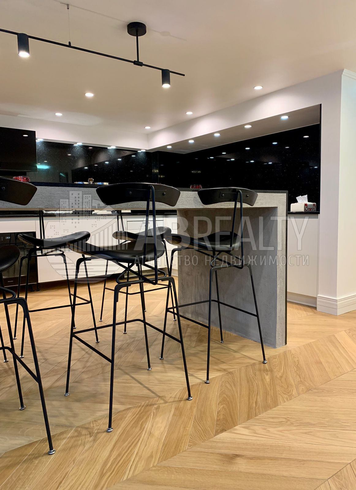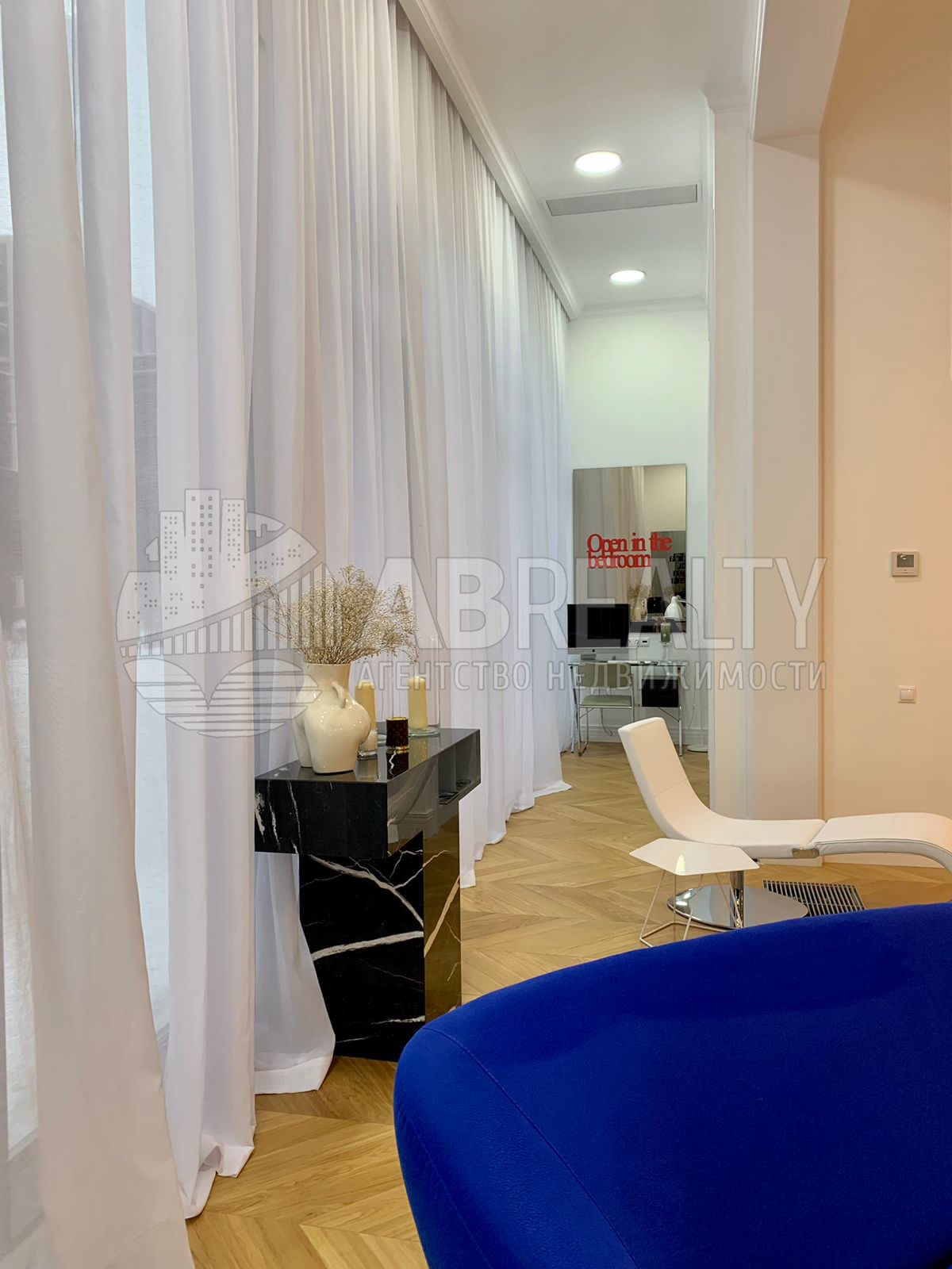 В квартире сделан современный ремонт в стиле Ар-Деко с применением люксовых отделочных материалов.