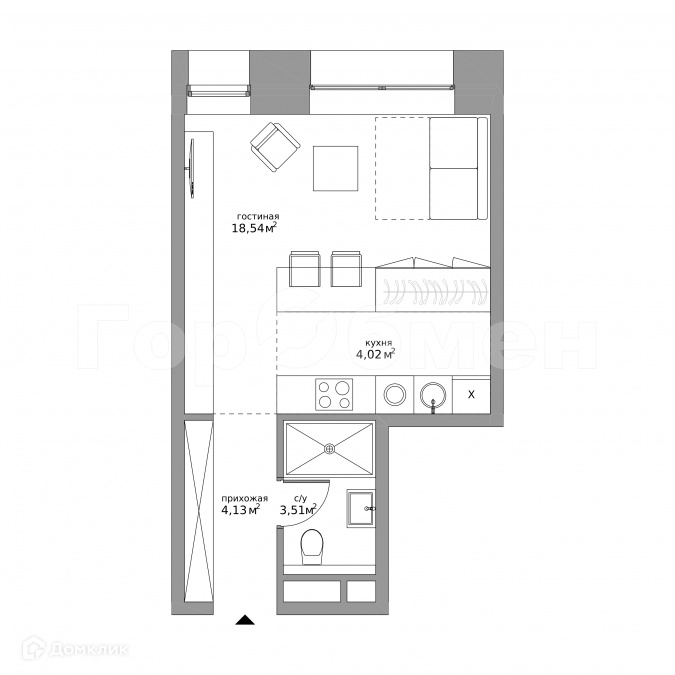 Жилая площадь 18.5 м2